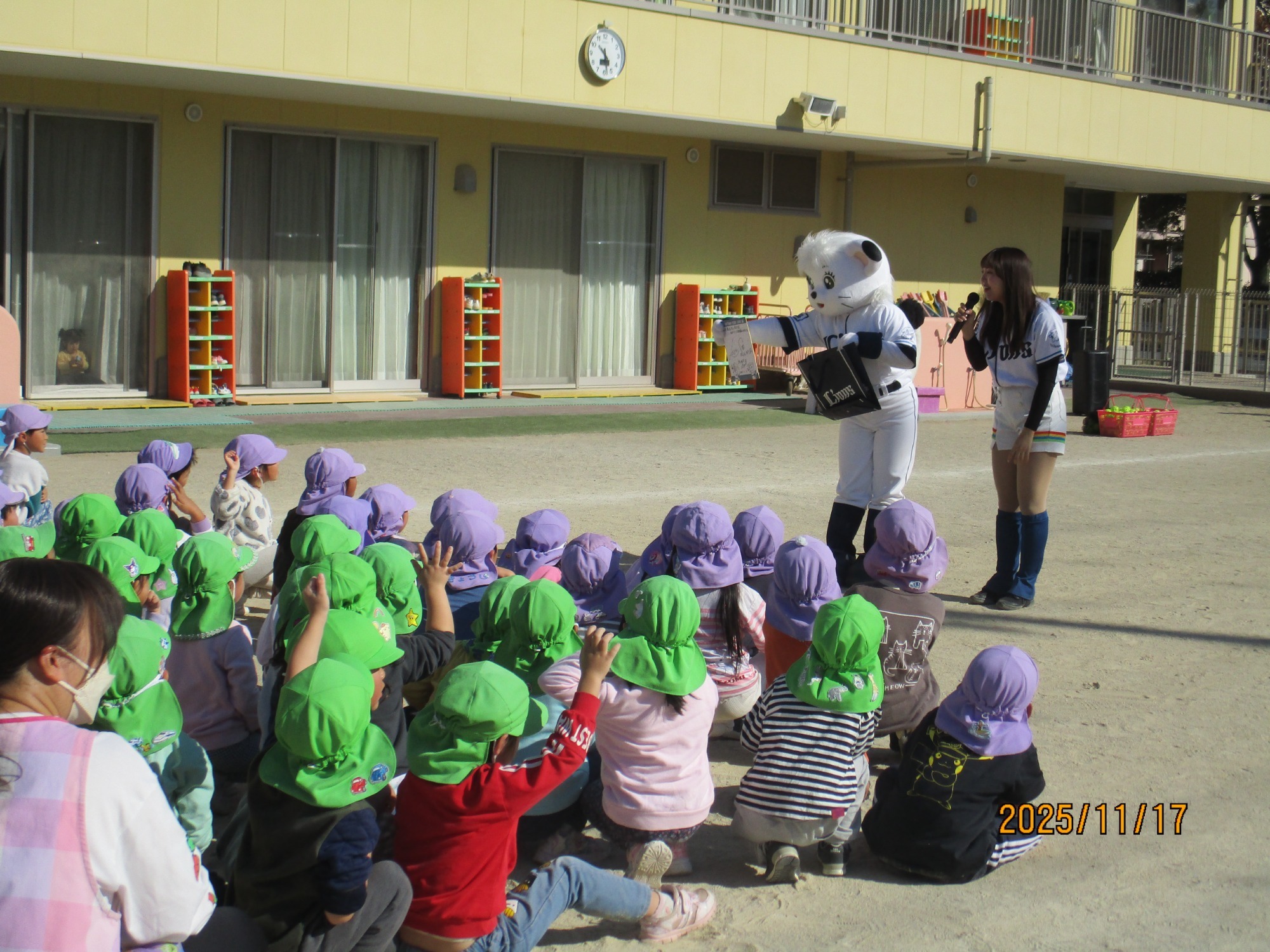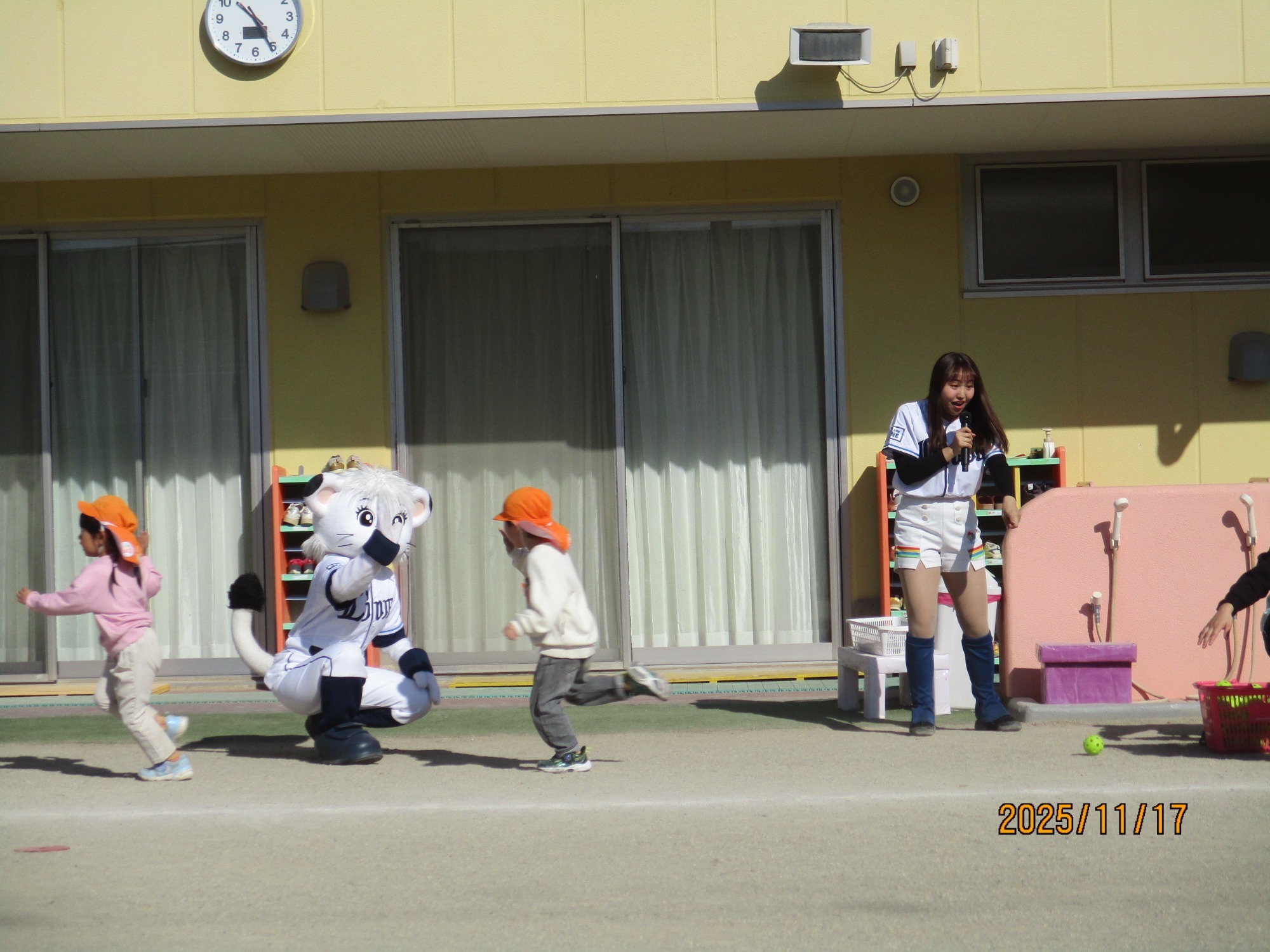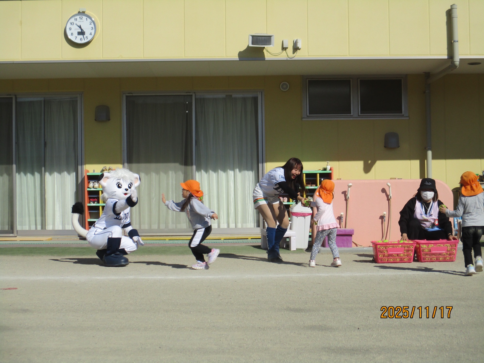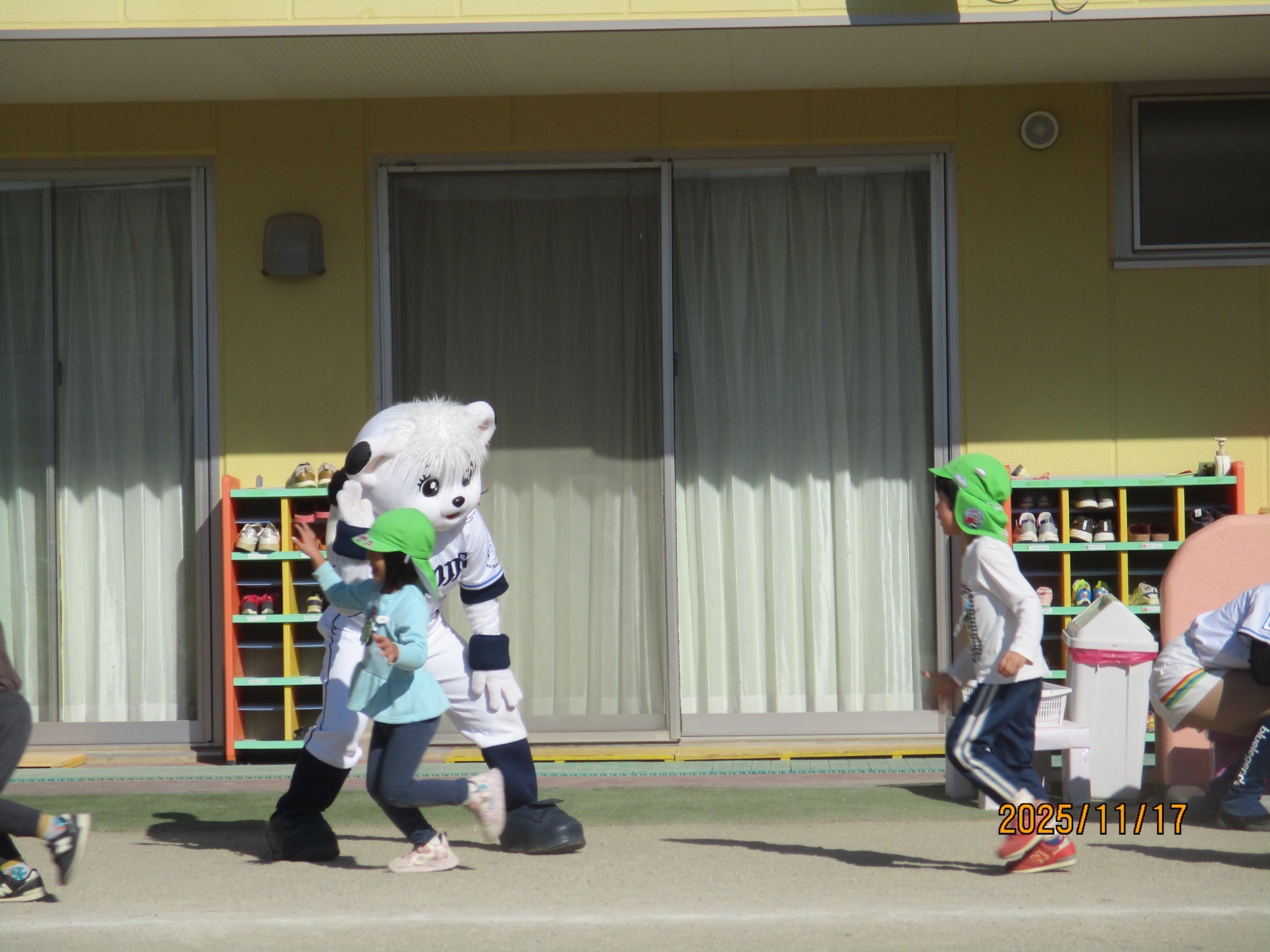 西武ライオンズのマスコット、ライナちゃんが遊びにきてくれました!元気いっ~ぱい、楽しく過ごしました。お友達のダンスやまねっこポーズ、ライナちゃんにほめてもらえたねっ☺クラス写真でのLのポーズもかっこよく決まりました💛
