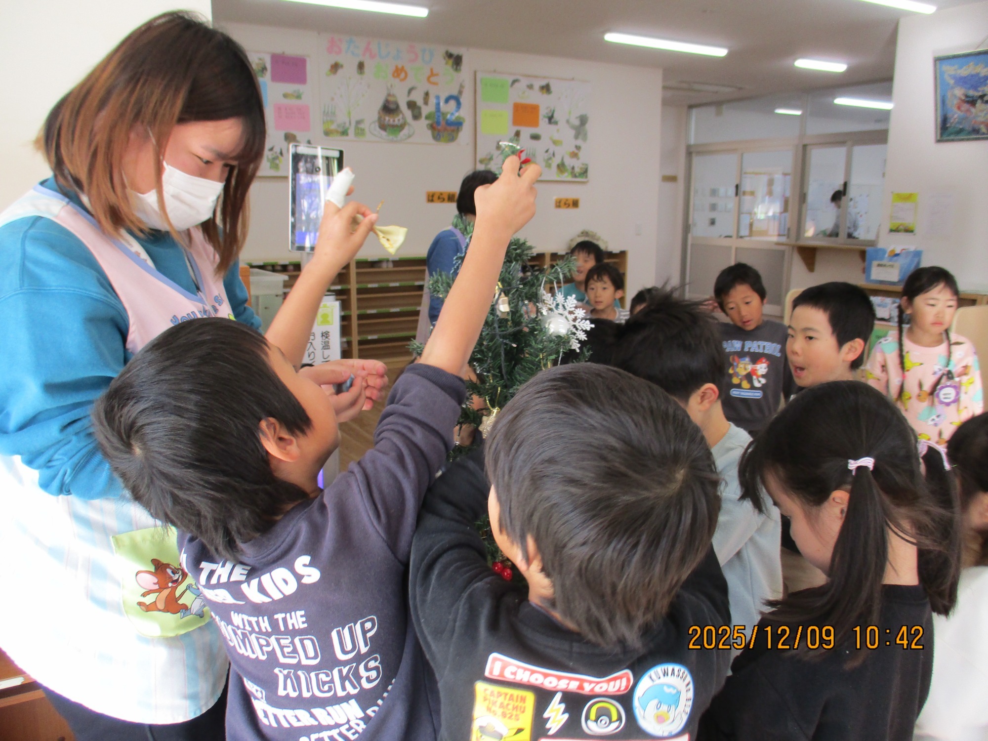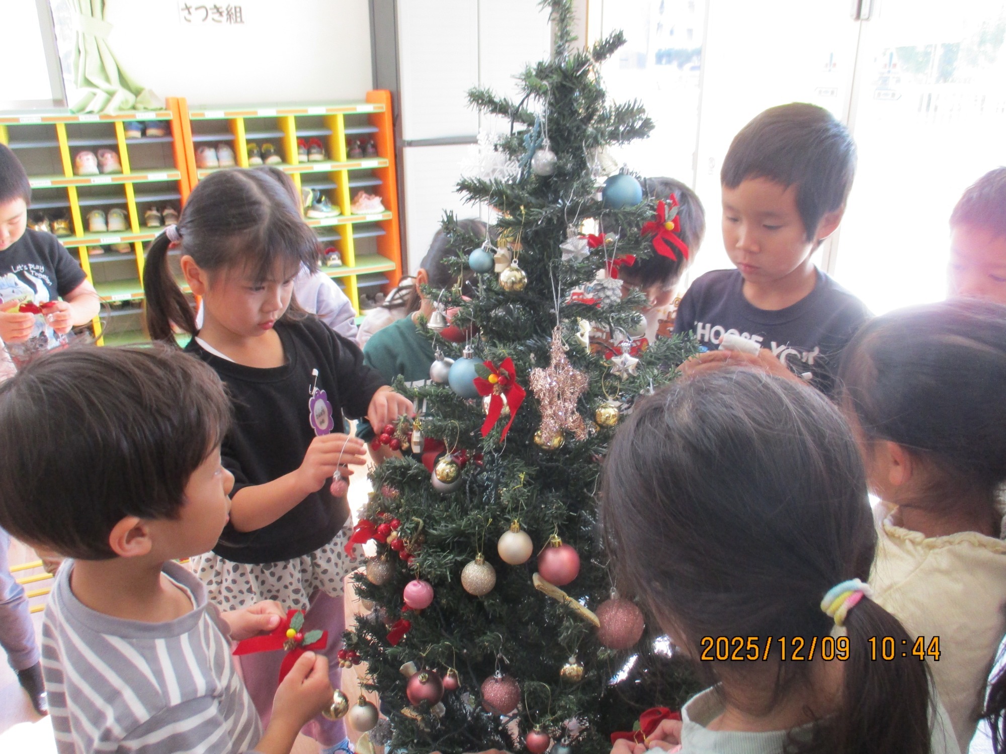 ばら組さん、みんなでオーナメントを飾ってクリスマスツリーの完成!!もうすぐクリスマス。サンタさんが来るのが待ち遠しいね☆