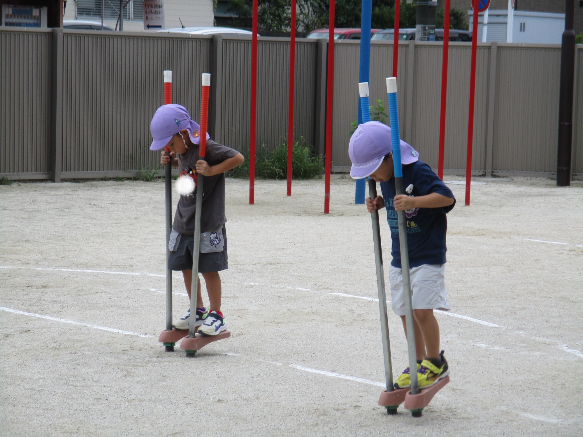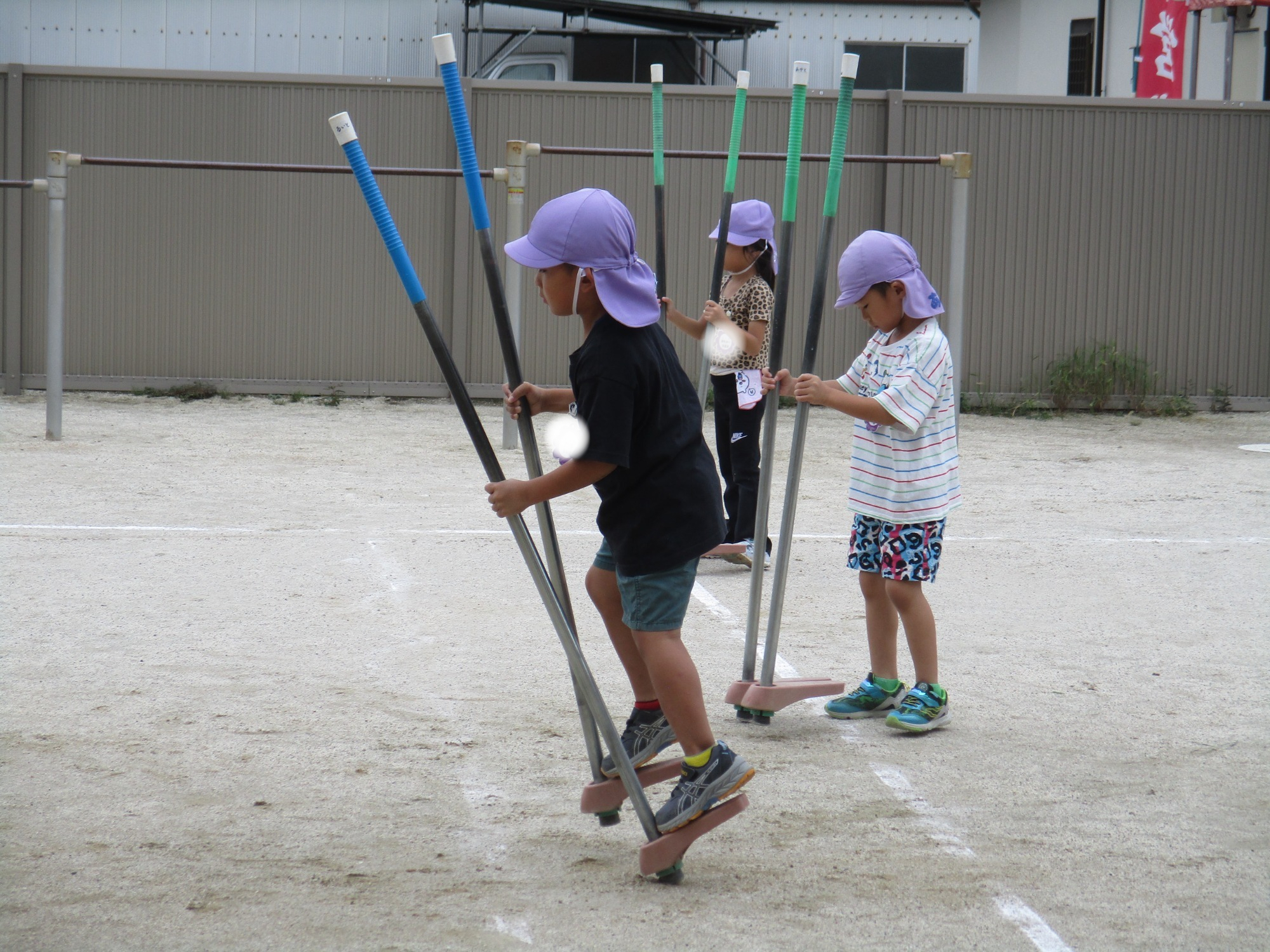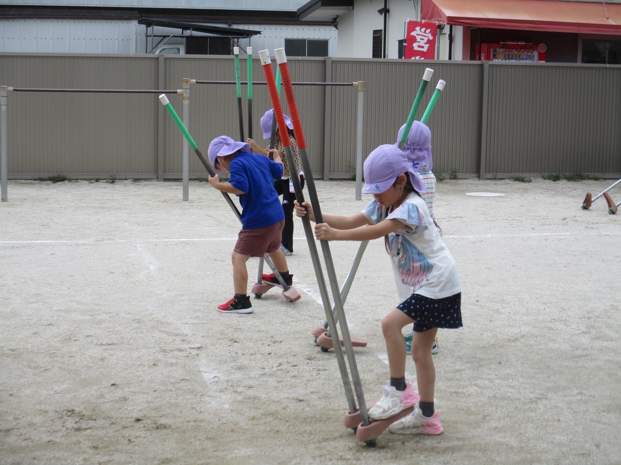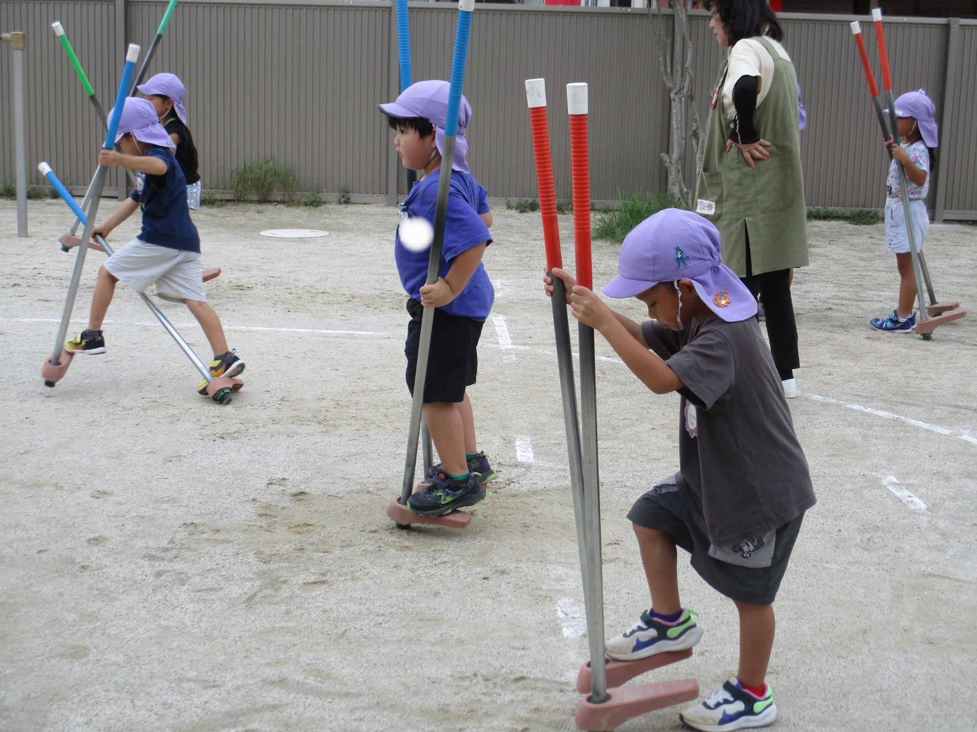今日は竹馬に乗れるように・・・2歩進めるように・・・と、目標はそれぞれだけど、上手になりたい!と頑張る気持ちはみんな一緒。失敗しても何度も繰り返し練習する姿に、その思いが伝わってきます。